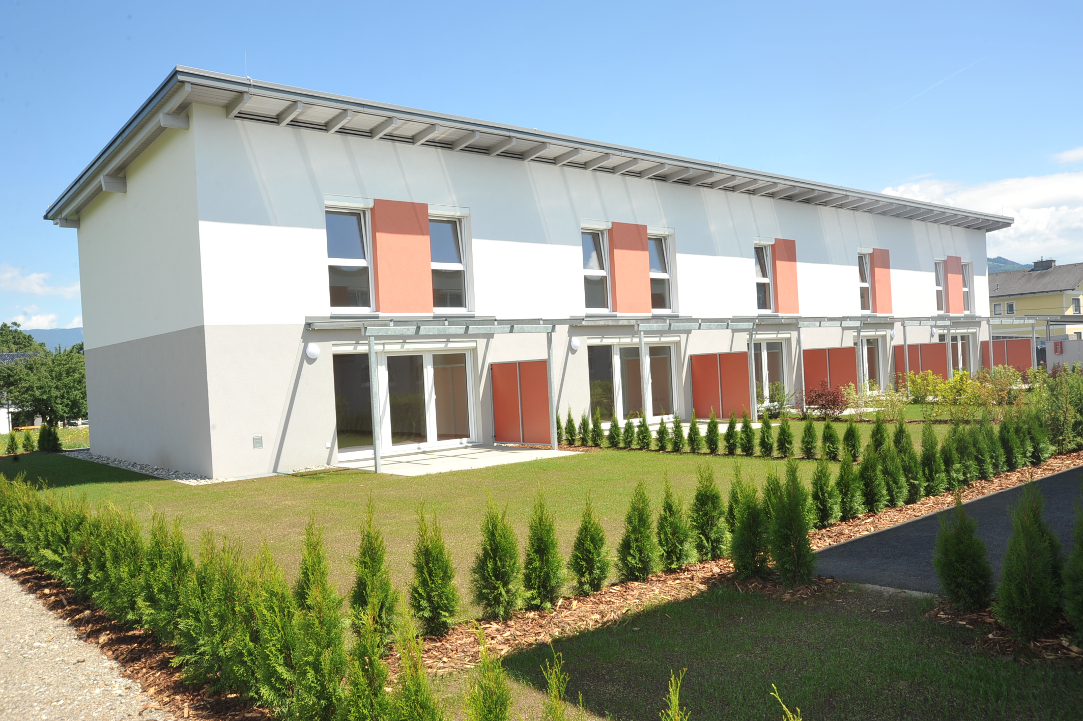 Die aus zehn Wohneinheiten bestehende Reihenhausanlage im Maissonettestil erfüllt alle Wünsche, die Wohnungsbezieher an ihr Zuhause stellen können. Eine moderne, familiengerechte Planung, für die Architektin Claudia Gruber verantwortlich zeichnete und eine ebensolche Ausstattung. Viel Licht, viel Sicht auf die großzügig gestalteten Außenanlagen, die den künftigen Mietern auch die Möglichkeit bieten, Wohngenuß außerhalb der eigenen vier Wände zu konsumieren.