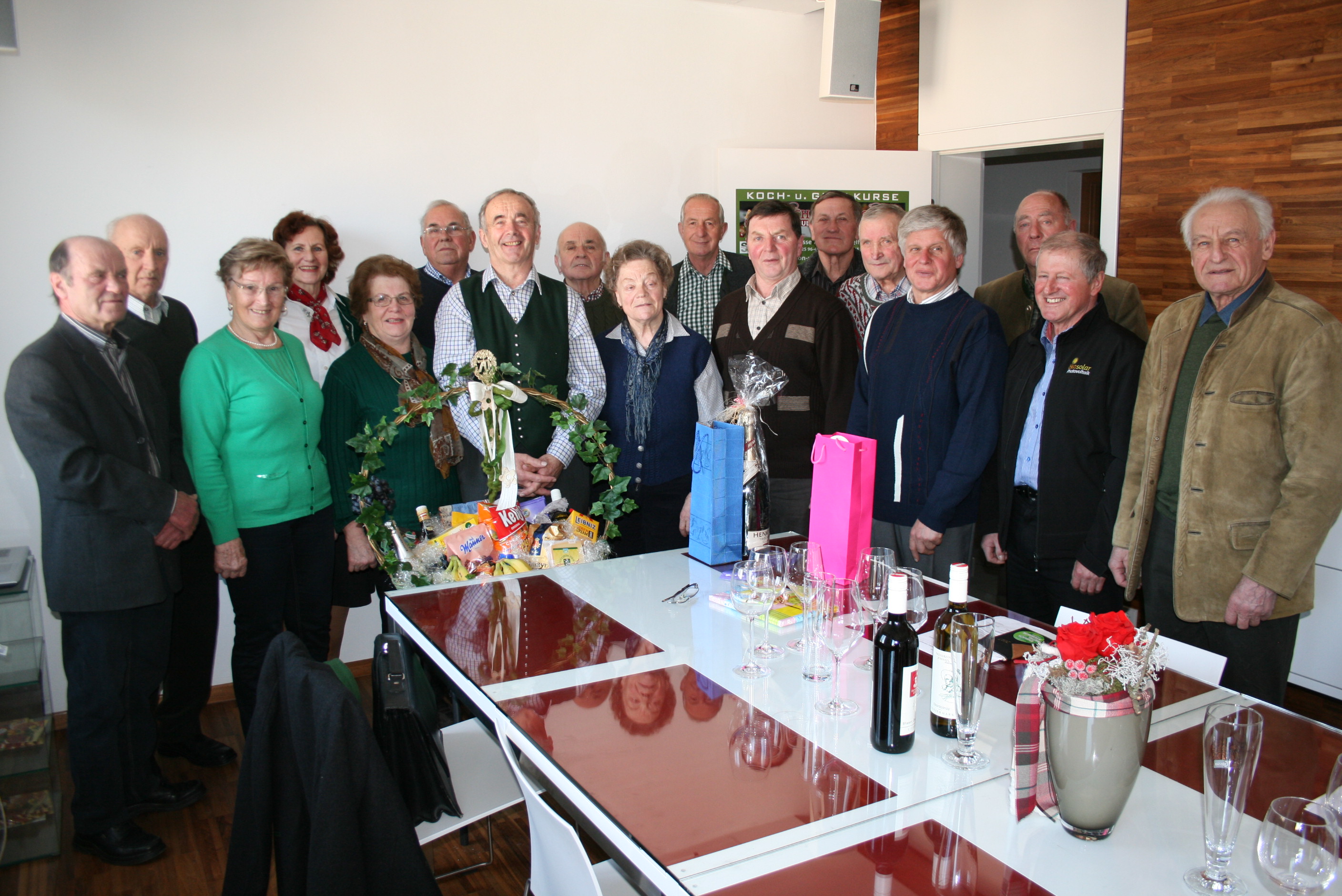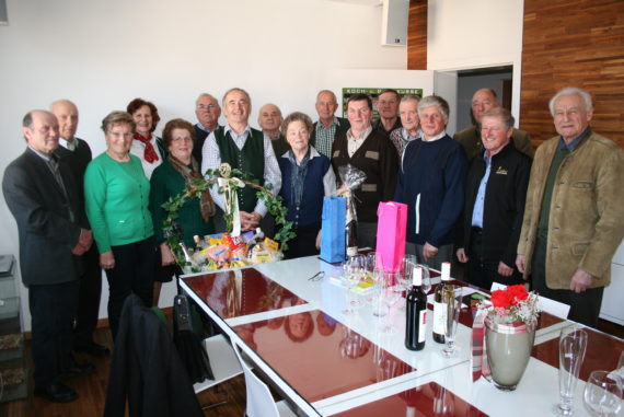 Die Funktionäre der Knittelfelder Altbauernorganisation ließen es sich am Ende der Jahreshauptversammlung auch nicht nehmen Obmann Stocker anlässlich seines 70. Geburtstages zu gratulieren und sorgten gemeinsam mit einem Trio des Altbauernchors für passende Gesangseinlagen.