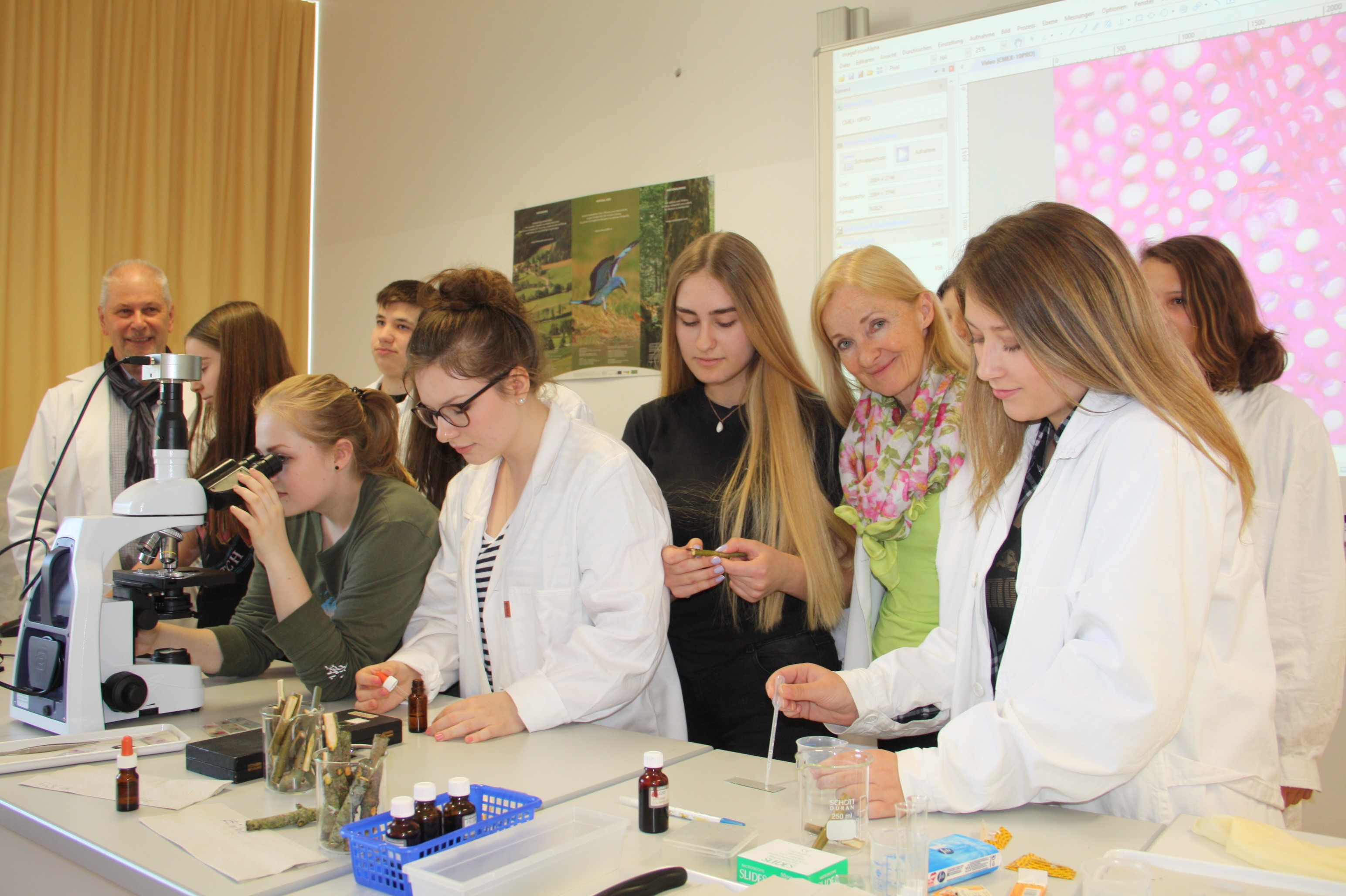 „Wer den Wald nützt, braucht eine Anleitung und die muss befolgt werden“, sind sich alle Beteiligten sicher. Heyer Perry, der eine Eigenjagd in Pusterwald besitzt, hat beim Workshop im Judenburger Gymnasium gesagt: „Der Wald ist nicht nur Natur, er hat auch Eigentümer. Mir ist im Winter so viel Schaden entstanden, dass ich mit den Kosten zur Behebung einen schönen Urlaub machen könnte.“ Schneeschuhwanderer sind über die Wipfel der aufgeforsteten Bäumchen gefahren und haben die Wipfel abrasiert. Das sei aber nur ein Beispiel von vielen. Mountainbiker, Radler mit E-Rädern, auch überbordente Sammlerwut richten Schäden an, welche die Waldbesitzer beheben müssen. „Es geht nicht nur um unser Eigentum, wir wollen den Wald für alle Menschen und deren Nachkommen erhalten und ihn deswegen schützen“, so Liebfahrt. „Ich kann mir nichts Besseres vorstellen, als die Jugend zu sensibilisieren“, so Josef Hafellner, der die Kobenzer Fachschüler begleitet hat. Er meint, dass auf den Wald noch viel zukomme und nannte das Stichwort „Klimawandel.“ Eva Gergely für die Judenburger Gymnasiasten: „Unsere Schüler sind mit Begeisterung dabei. Heute haben wir zum Thema mikroskopiert.“ Direktor Manfred Mischlinger ist Biologe und war von vornherein dem Projekt gegenüber aufgeschlossen.
