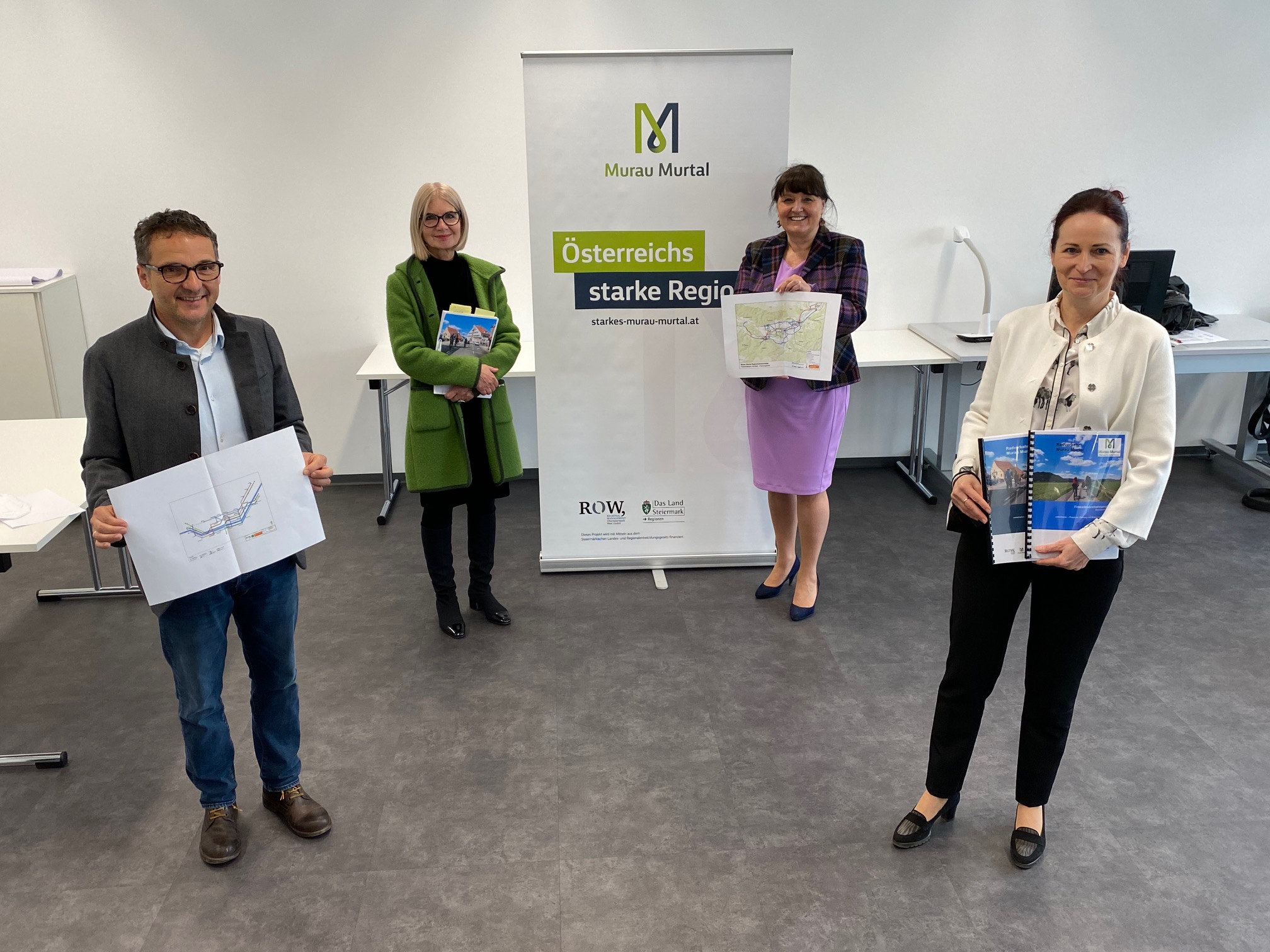 „Radverkehrsförderung bringt mehr Lebensqualität in den ländlichen Raum, die vor Ort sichtbar und erlebbar ist. Murau Murtal soll fahrradfreundlicher werden – das ist Ziel der Region“, waren sich ROW-Vorsitzende Landtagspräsidentin Manuela Khom, die stv. ROW-Vorsitzende 2. Landtagspräsidentin Gabriele Kolar, DI Andreas Braun (Baubezirksleitung Obersteiermark West) und ROW-Geschäftsführerin Dr. Bibiane Puhl anlässlich der Konzept- und Projektvorstellung in der Wirtschaftskammer Murau Murtal in Judenburg einig.