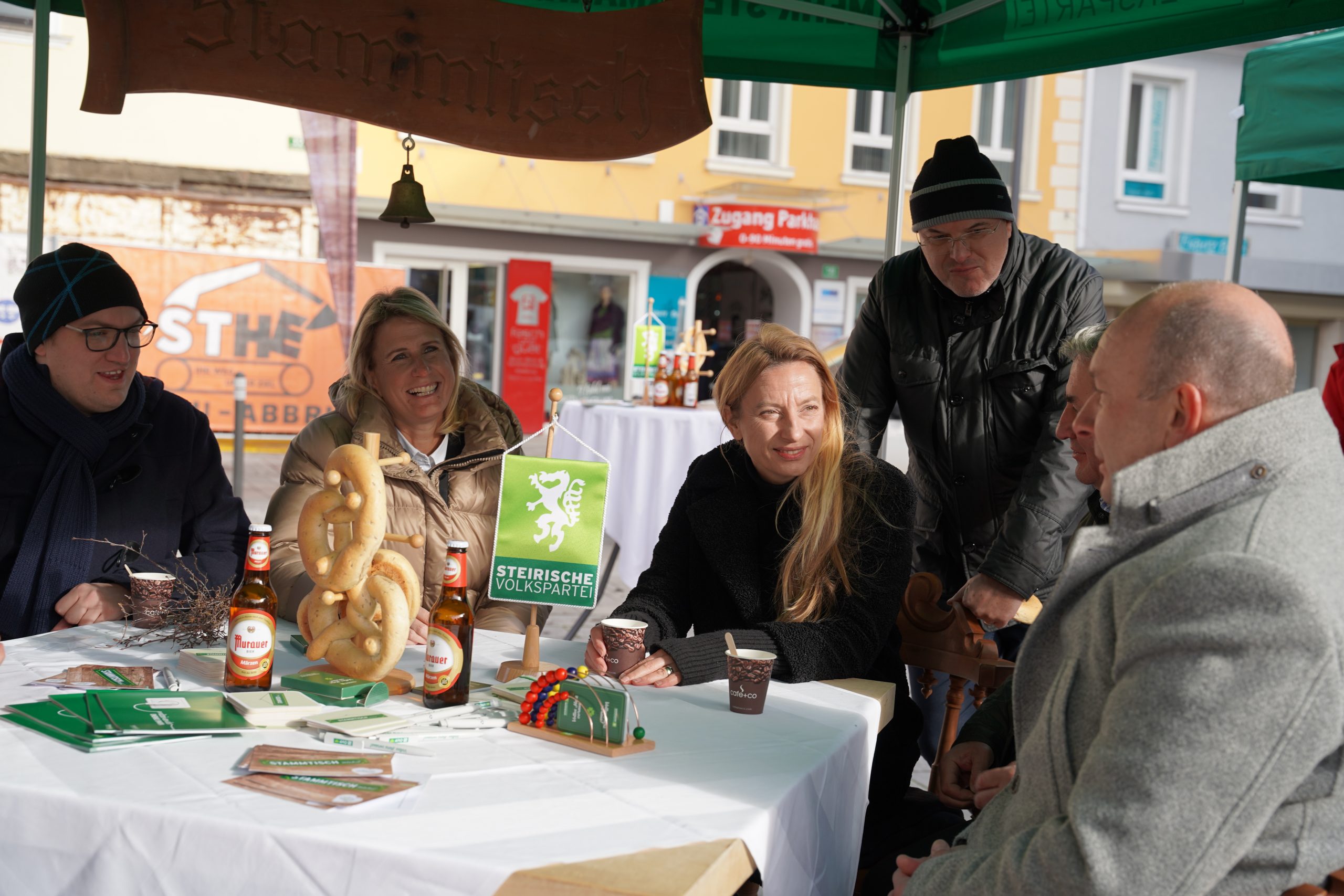 Am 19. November ging das Projekt für mehr Miteinander im Bezirk Murtal über die Bühne: Der „Mobile Stammtisch“ soll das Kulturgut Stammtisch wiederbeleben und bot am Hauptplatz in Knittelfeld die Gelegenheit, mit Landesrätin Juliane Bogner-Strauß, Bezirksparteiobmann LAbg. Bruno Aschenbrenner und Vizebürgermeister Wolfgang Knauseder in gemütlicher Atmosphäre ins Gespräch zu kommen. Unter dem Motto „Gehört – Gesagt“ konnten Steirerinnen und Steirer vorbeikommen und Meinungen, Kritik und natürlich Ideen für die Steiermark teilen.