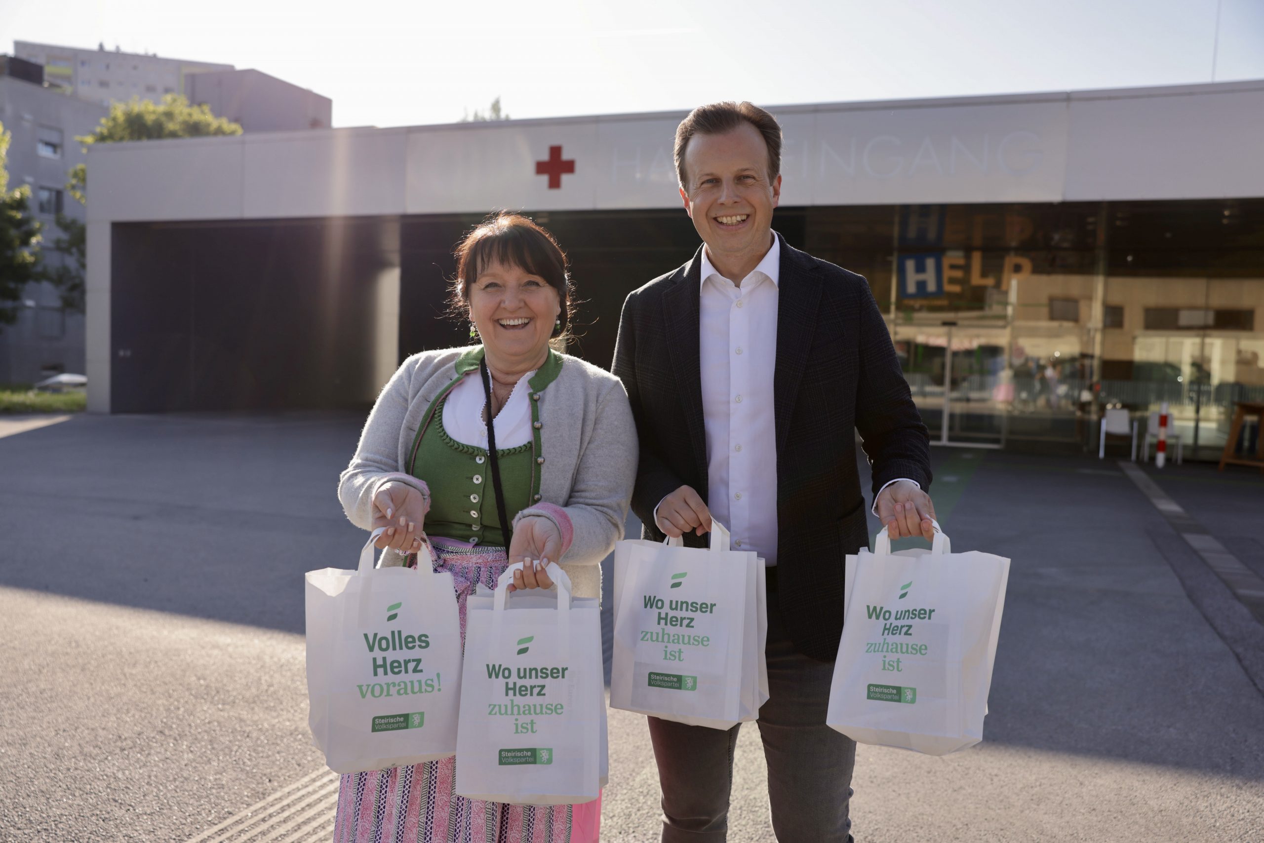 LH-Stv. Khom: „Leistung ist für uns seit jeher ein Wert, der etwas wert sein muss“ Am 1. Mai sagt die Steirische Volkspartei traditionell „Danke“: Jedes Jahr am „Tag der Arbeit“ besuchen die gf. Landesparteiobfrau Landeshauptmann-Stellvertreterin Manuela Khom sowie Regierungsmitglieder, zahlreiche Abgeordnete und Funktionärinnen und Funktionäre in der ganzen Steiermark Menschen an ihrem Arbeitsplatz und bringen ihnen ein Frühstück oder eine Jause vorbei. Gemeinsam mit Landesrat Karlheinz Kornhäusl stattete die Landeshauptmann-Stellvertreterin dem LKH II Standort West einen Besuch ab. Miteinander überreichten sie den Mitarbeiterinnen und Mitarbeitern des Landeskrankenhauses das steirische Frühstück.